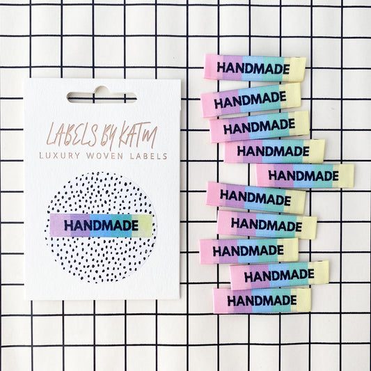 'HANDMADE' rainbow woven labels 10 pack