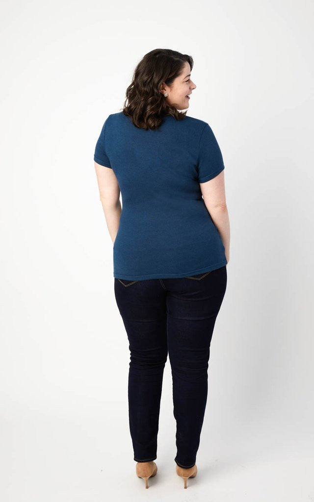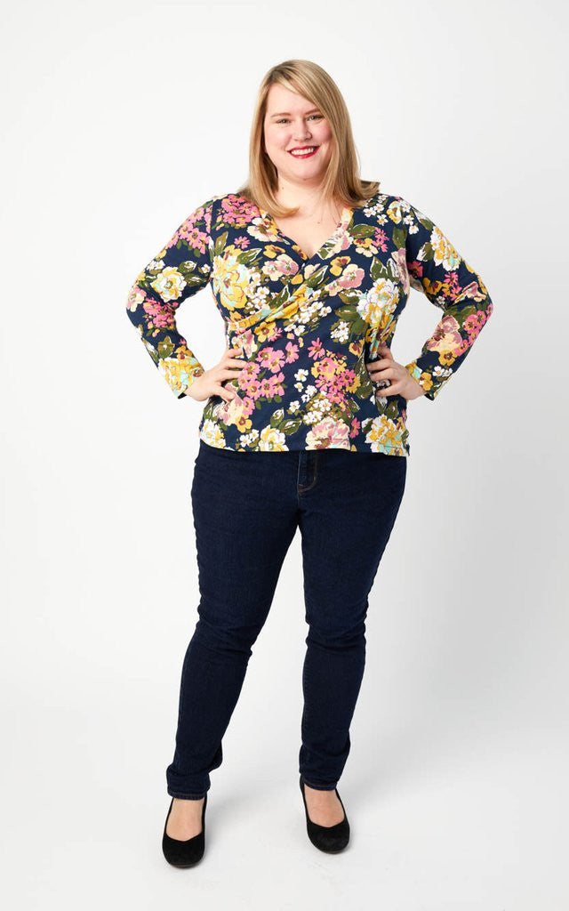 Dreaming of a pattern that is casual, chic and looks totally fabulous if you have bigger boobs? Look no further than the Dartmouth Top! This cross-over jersey top with cup sizes from C - H comes with two variations—a classic fixed wrap or modern ruched front—and features three sleeve lengths and a totally gape-free banded neckline. Whether made in a cozy sweater knit or a cotton jersey, the Dartmouth is the perfect partner for your favorite pair of jeans!