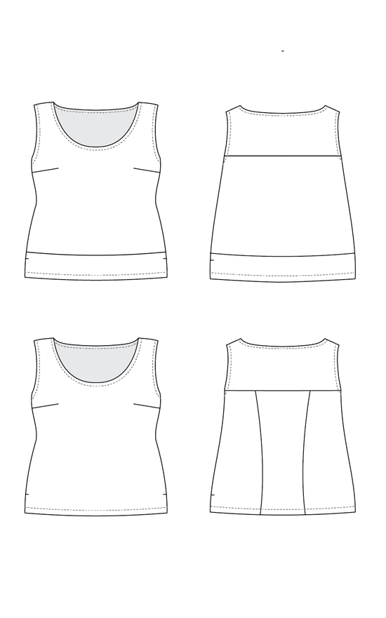 Choose from two views: view A has a loose silhouette with an optional hem band, while View B has a more fitted back with princess seams to beautifully skim your curves. Both variations have scooped necklines, back yokes and comfortably split side seams. Change up the look by using a simple cotton or linen, silk, or even lace – the possibilities are endless.