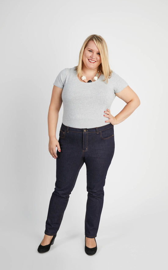 Make a date with denim in the classic and versatile Cashmerette Ames Jeans: stretch jeans exclusively designed for curves.
