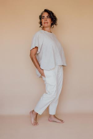 The pants sit on the natural waist and feature a fly front with zip closure, shaped waistband, in-seam pockets, back pockets and hem facings. The Darlow pants are designed to be quite fitted through the waist and hip, before more volume is added through the leg, for an interesting shape.