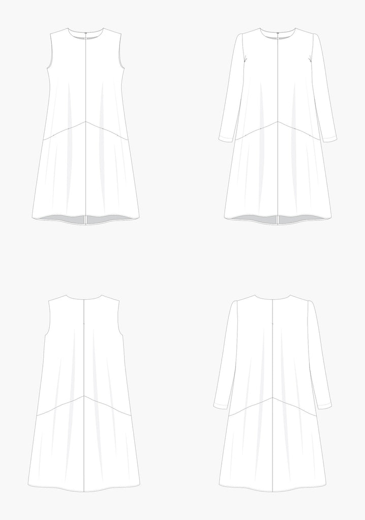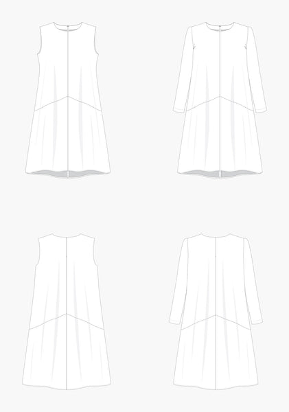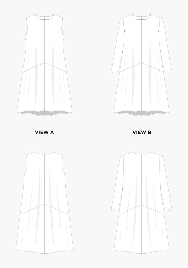 The Farrow features an elegant A-line shape with flattering diagonal seaming concealing inseam pockets, and a jewel neckline. Imagine wearing View A during the balmy days of summer. View B features bracelet sleeves and is the perfect option for cooler temperatures in the spring and autumn. Layer it with tights and a cardigan for the snowy days of winter. Dress it up with heels and dress it down with boots.