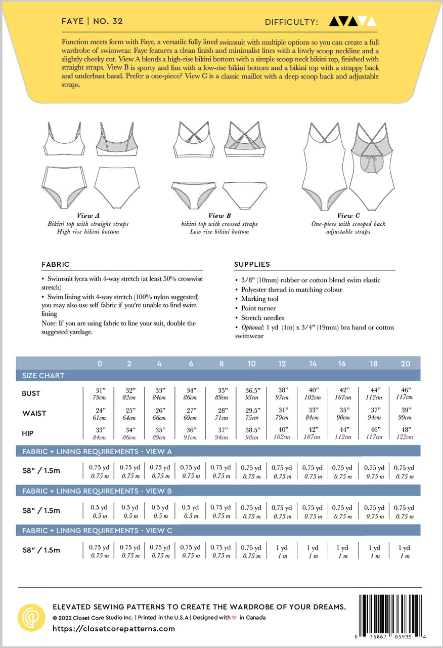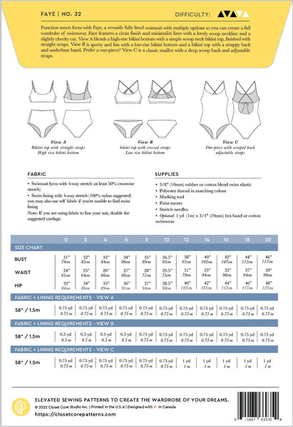 View A blends a high-rise bikini bottom and a bikini top with straight straps. View B is sporty and fun with a low-rise bikini bottom and a bikini top with a strappy back and supportive underbust band. Prefer a one-piece? View C is a classic maillot with a deep scoop back and adjustable straps.