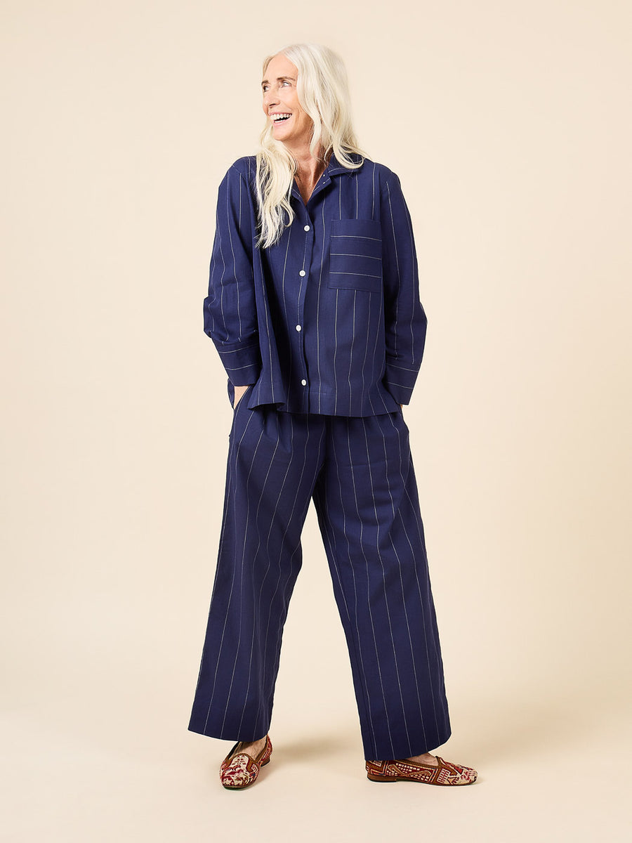 Elevate your lounging and sleeping game with the Fran Pajamas. Featuring tailored details with a slouchy fit, they look just as good in bed as they do glammed up and on the town.