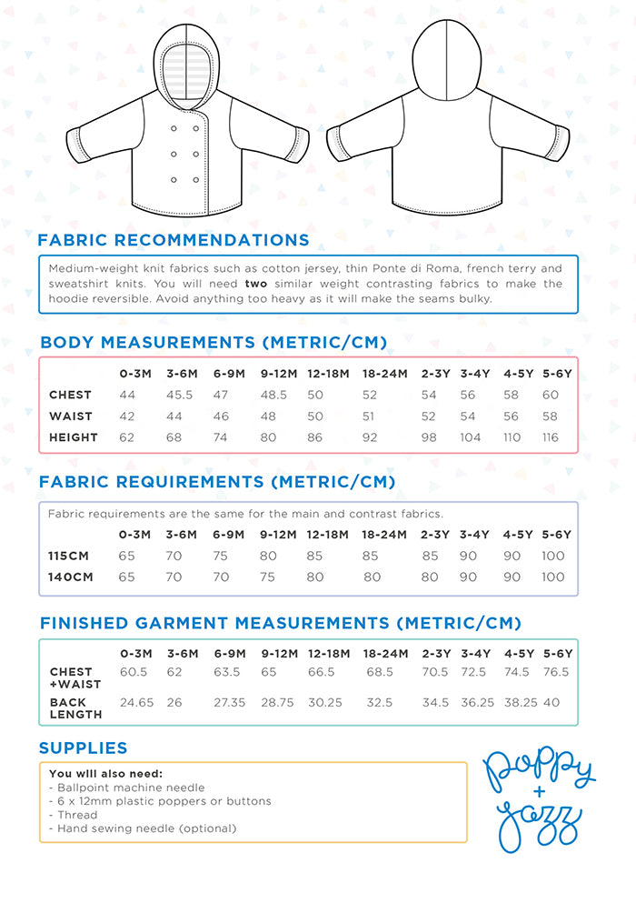 The Honeydew Hoodie is designed for babies and children from 0-3 months to 6 years.