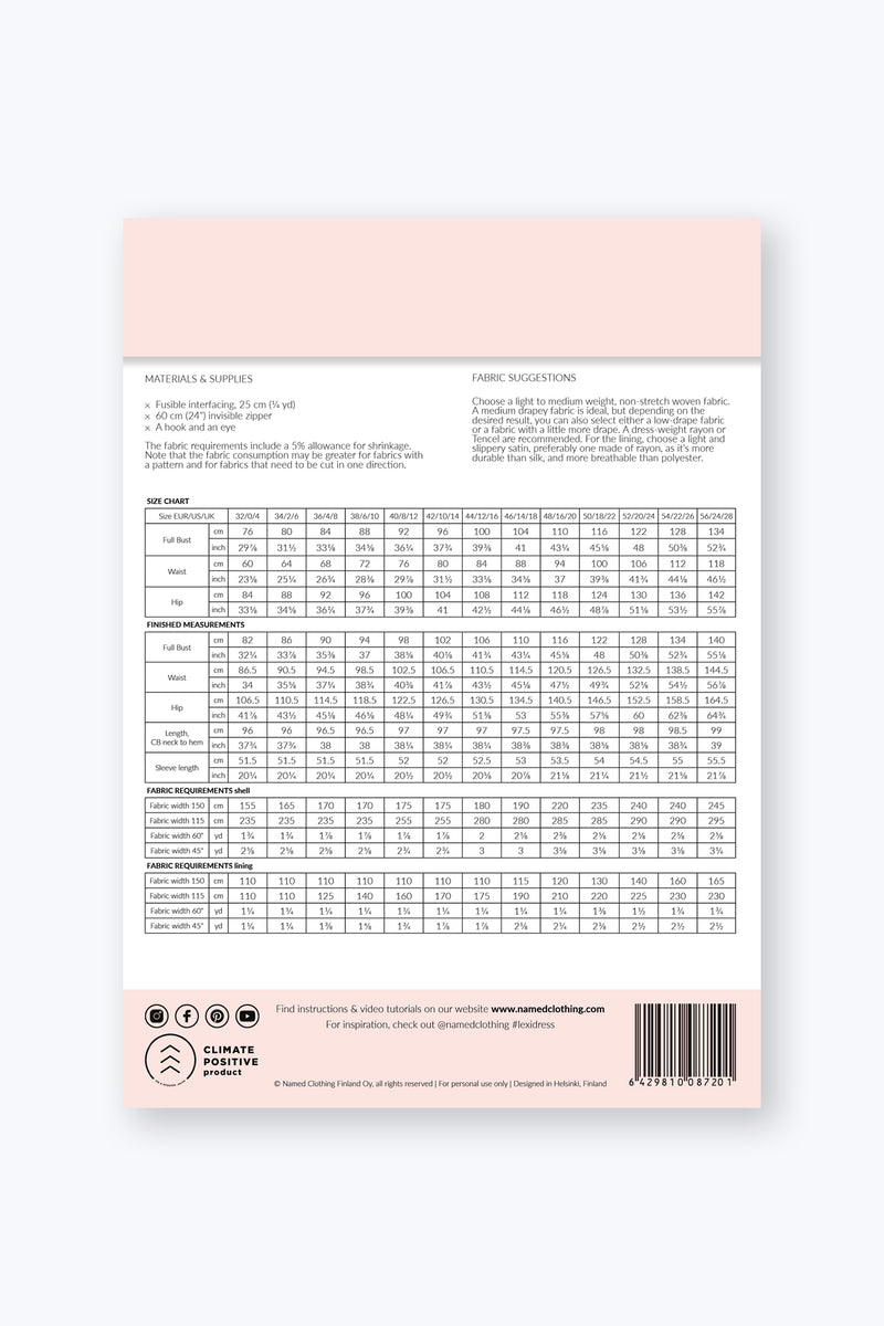 Choose a light to medium-weight, non-stretch woven fabric. A medium drapey fabric is ideal, but depending on the desired result, you can also select either a low-drape fabric or a fabric with a little more drape. A dress-weight rayon or Tencel are recommended. For the lining, choose a light and slippery satin, preferably one made of rayon, as it’s more durable than silk, and more breathable than polyester.