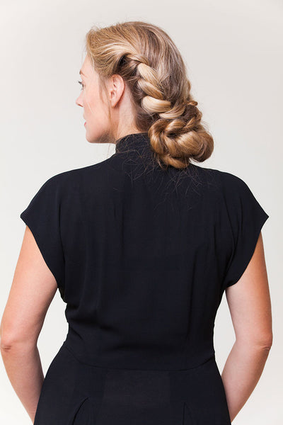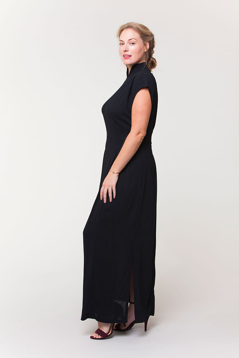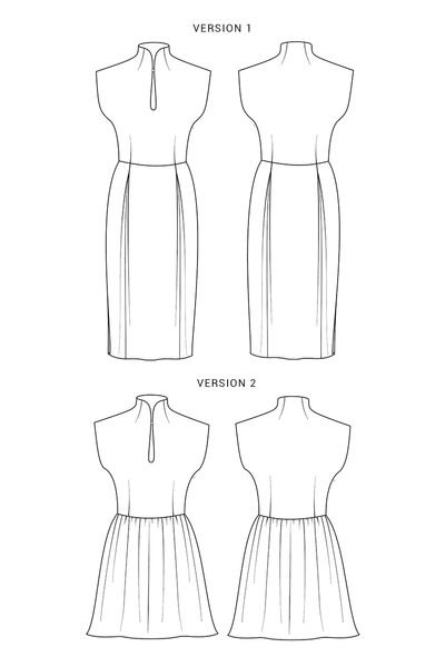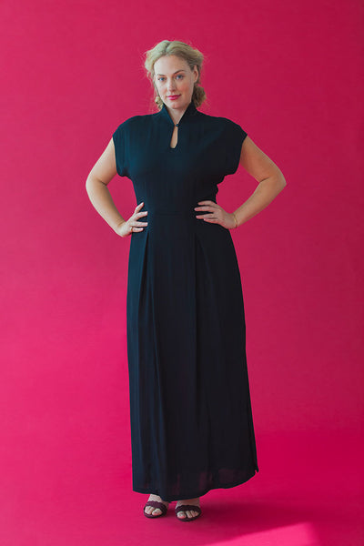 Prudence is a sumptuous dress that will expand your sewing knowledge and wardrobe. With romantic bodice details, such as a mandarin collar, front neckline keyhole, and dolman sleeves, this dress is sure to garner some attention.