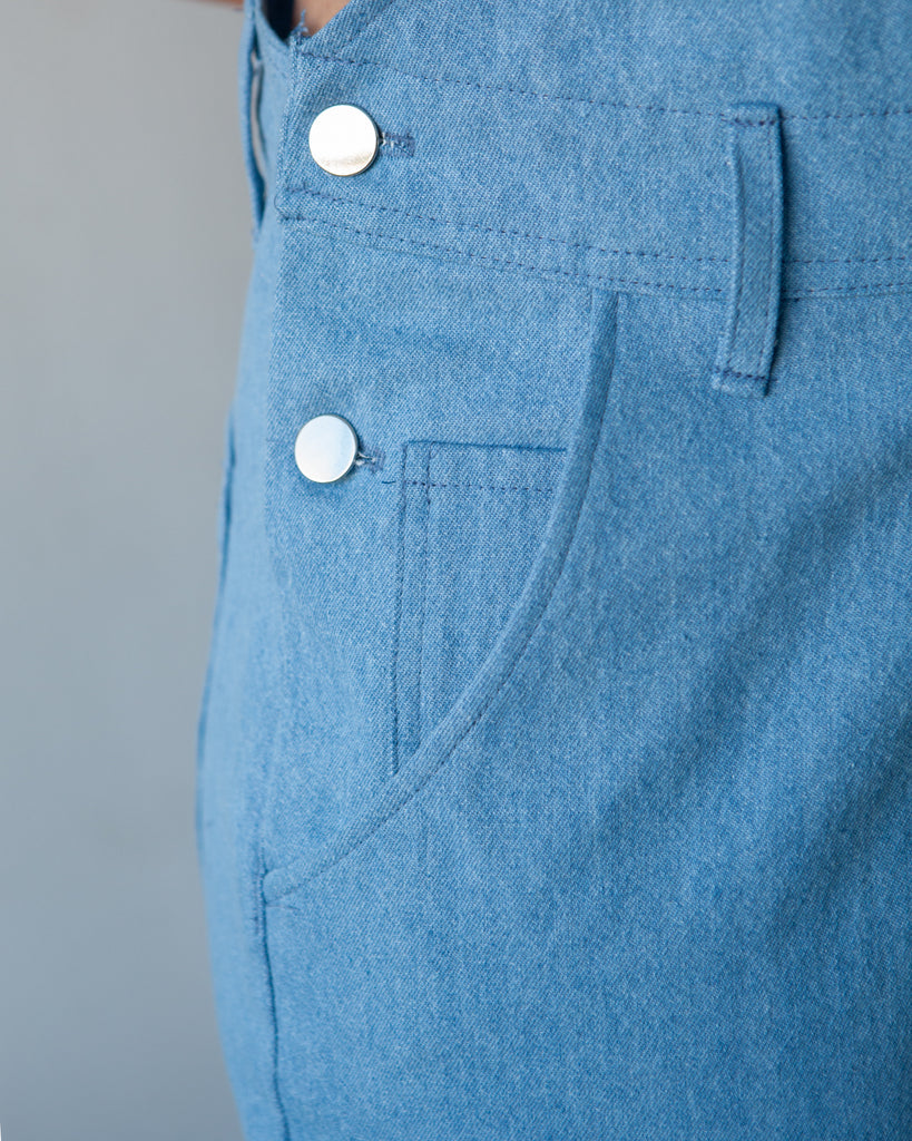 Medium to heavy bottomweight fabrics with little to no stretch such as denim, corduroy, twill and linen. (Keep the strength of your sewing machine in mind when choosing the weight of your fabric as there are many ssteps with multiple layers to sew through.)