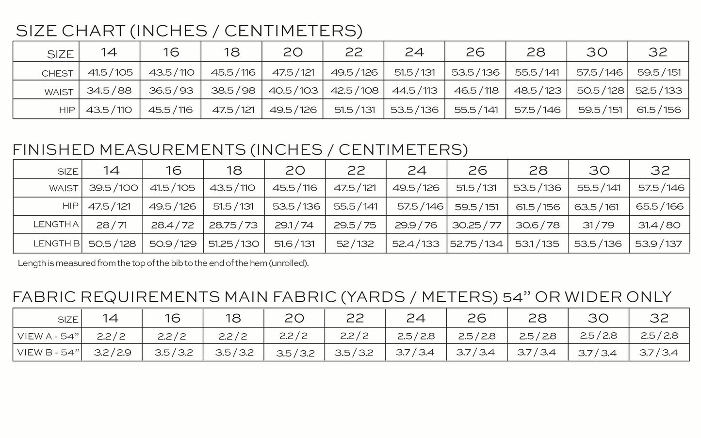 Includes sizes 14 - 32 (waist sizes 34.5" - 52.5").