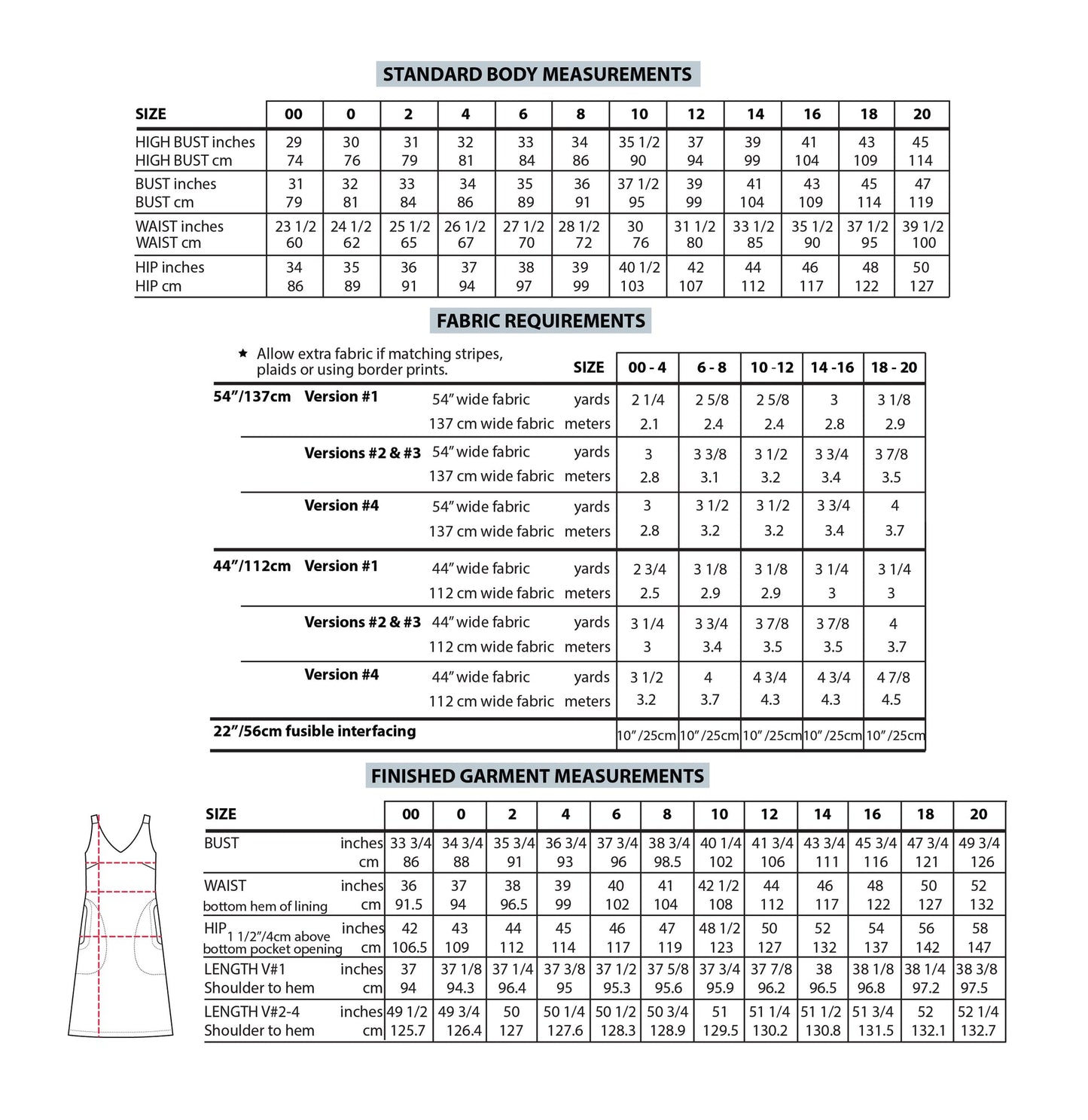 Includes sizes 00 - 20 (bust sizes 31" - 47").