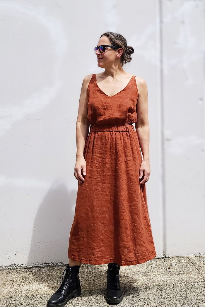 The Sauvie Sundress is the perfect strappy summer dress to reach for when you are wanting comfort, ease and style in those hot summer months. It's also perfect for layering over a t-shirt as a pinafore when the temperatures drop. Sauvie can be anything from a swim cover-up to a casual summer dress to an elegant evening gown depending on your fabric choice.