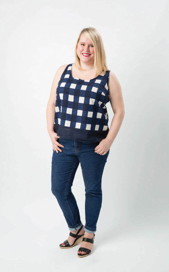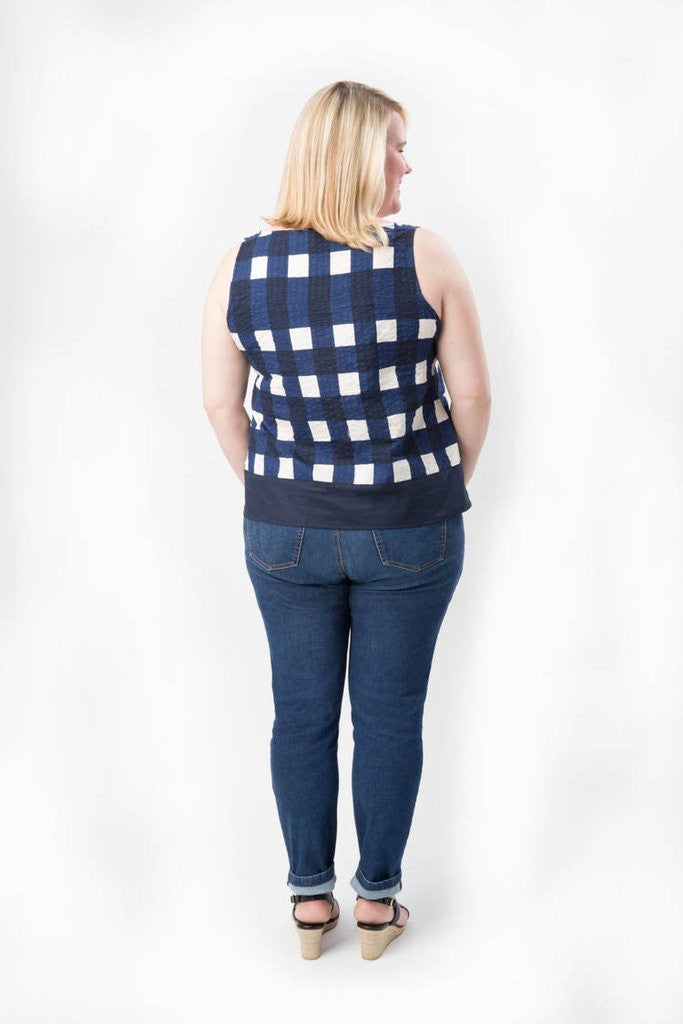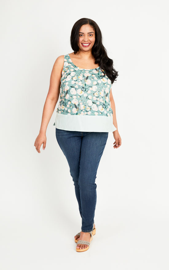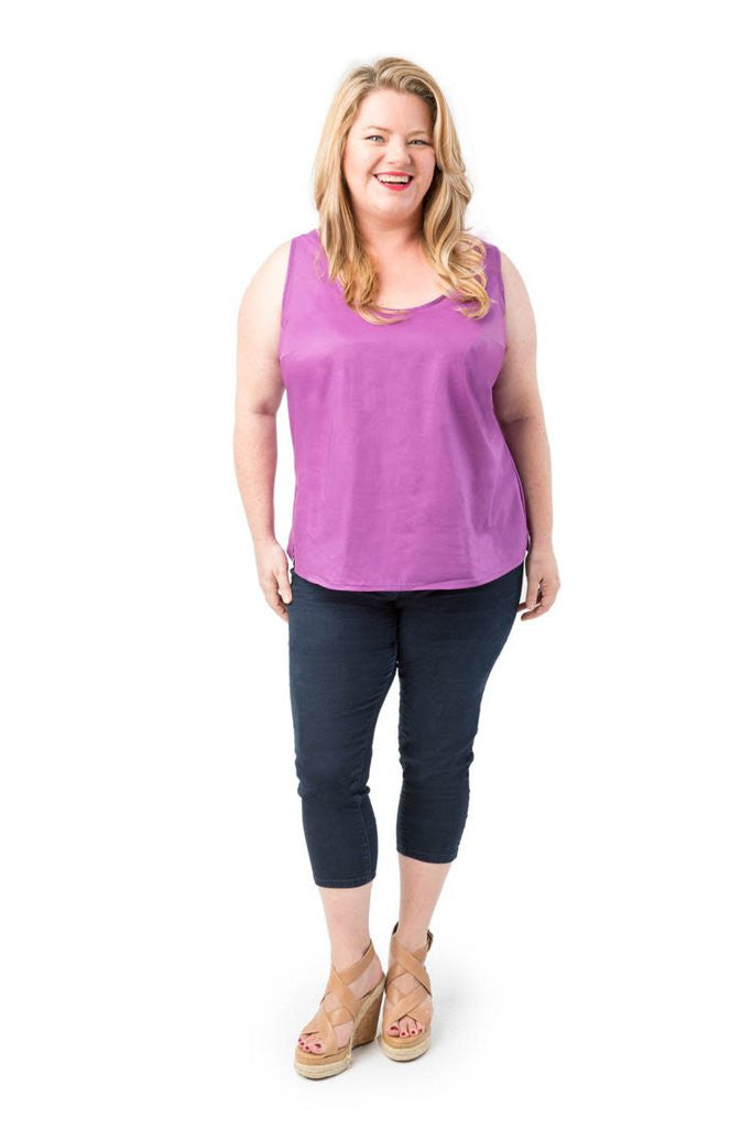Choose from two views: view A has a loose silhouette with an optional hem band, while View B has a more fitted back with princess seams to beautifully skim your curves. Both variations have scooped necklines, back yokes and comfortably split side seams. Change up the look by using a simple cotton or linen, silk, or even lace – the possibilities are endless.