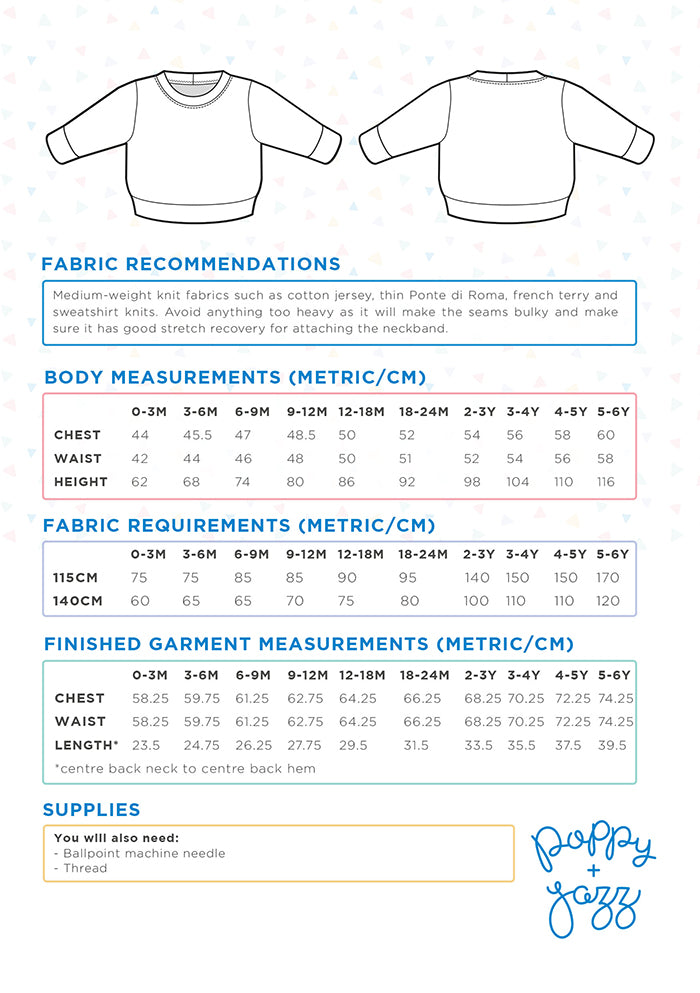Super simple and easy to make, the Strawberry Sweatshirt is a true staple and a great addition to a little one’s wardrobe. Designed to be sewn in stable knits, it’s a great first knit fabric project for any beginner. Leave it plain for everyday, or have fun “jazzing” it up with applique or embroidery!