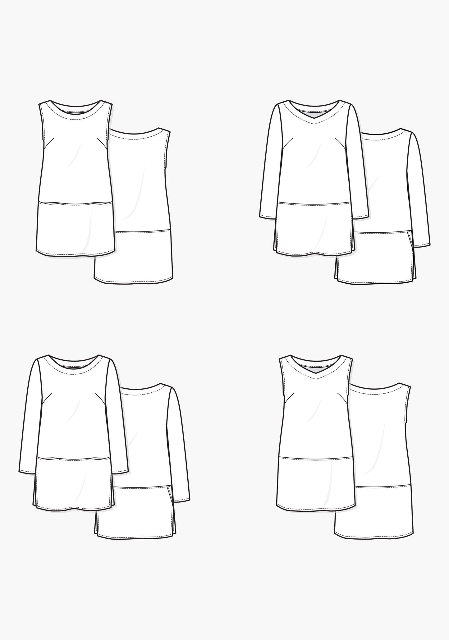 The Uniform Tunic is designed as a choose your own adventure sewing pattern. While four options have been provided for you, the possibilities are endless as all of the design features are mix and match! Choose your favorite neckline and skirt, decide between sleeves or sleeveless, add pockets — you can’t go wrong!